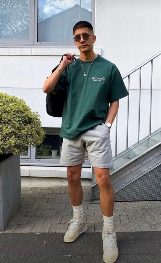 Par exemple, si vous décidez de mettre en avant votre musculature avec un T-shirt sobre assez moulant, décalez le look en portant un short plus ample et des mocassins ou des baskets : une association simple, mais efficace. Si vous optez pour une chemise plus fluide, vous pouvez vous accorder les pantalons plus près du corps comme les slims.