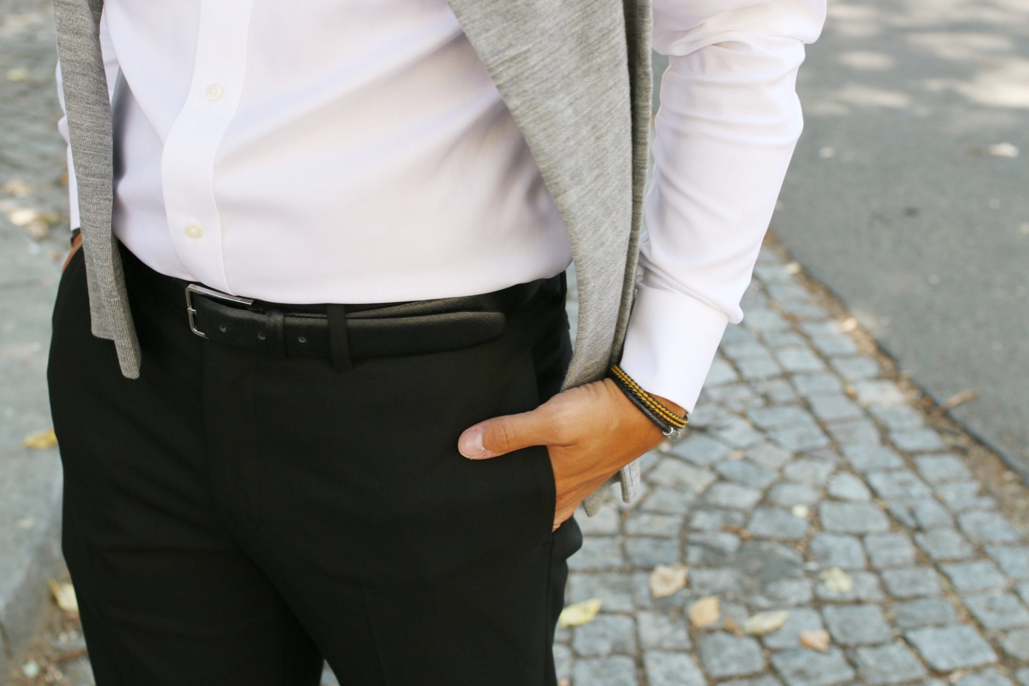 Me concernant, j’aime le porter légèrement remonté juste au-dessus de la cheville, avec des chaussettes basses et une paire de sneakers afin de donner un côté plus « street/chic » à l’ensemble quand ma journée me le permet. Si ce n’est pas le cas, alors une paire de chaussure de ville foncées, les chaussettes qui vont avec et le pantalon qui tombe parfaitement à ce niveau et la journée peut commencer !