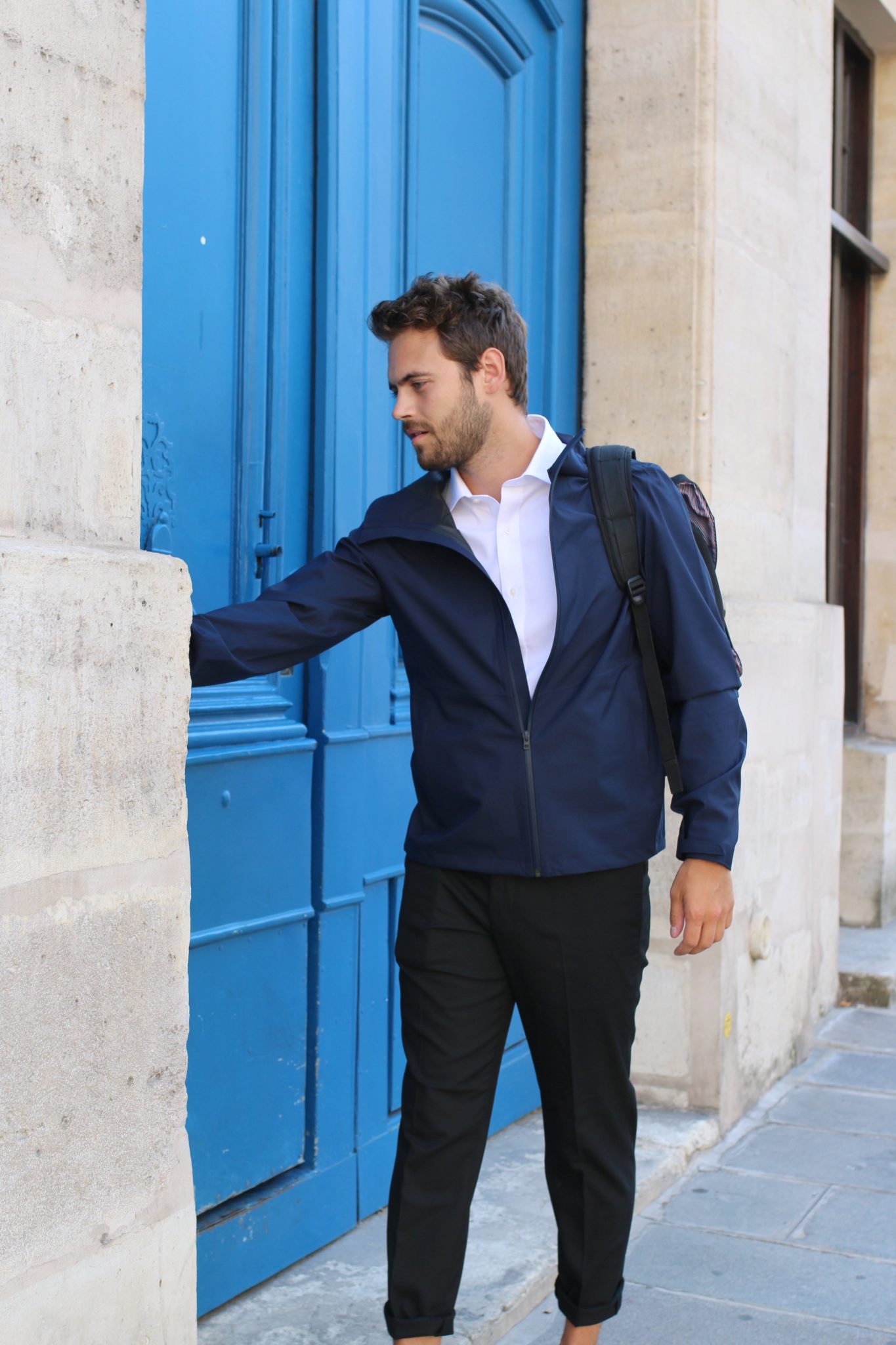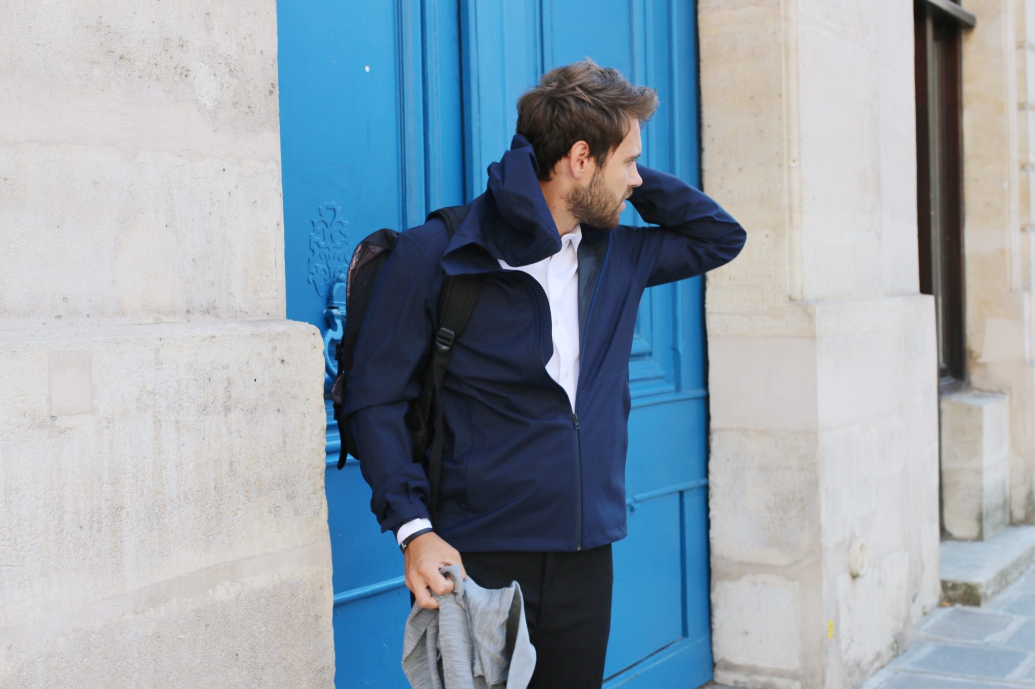 Pour la veste, je me suis intéressé à leur Parka Blocktech, conçue à partir d’un tissu respirant qui résiste à la pluie tout en protégeant du vent. Assez légère donc pour ne pas tenir trop chaud, elle est bien pratique en cas d’averse ou autre désagrément !